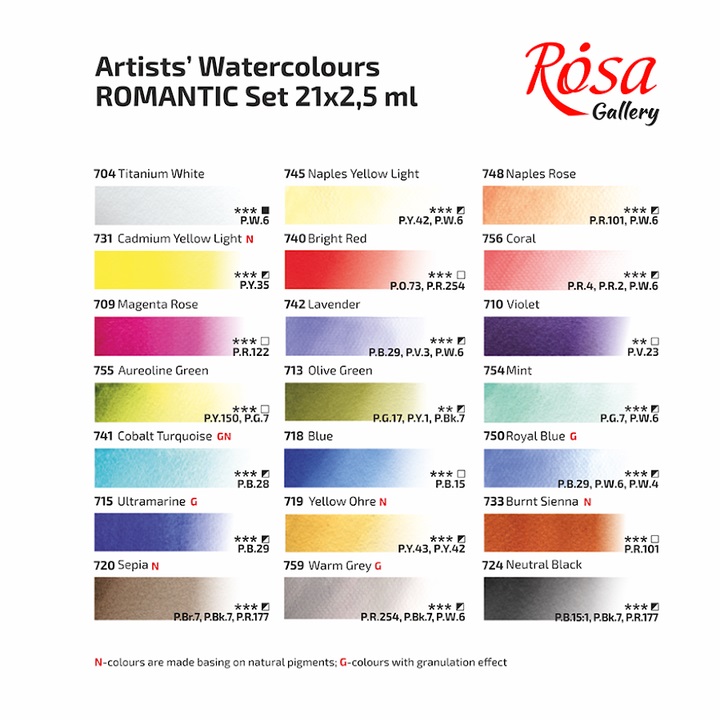 Introduction » Akvarelne boje Galerija Rosa - set Romantic 21 k 2,5 ml