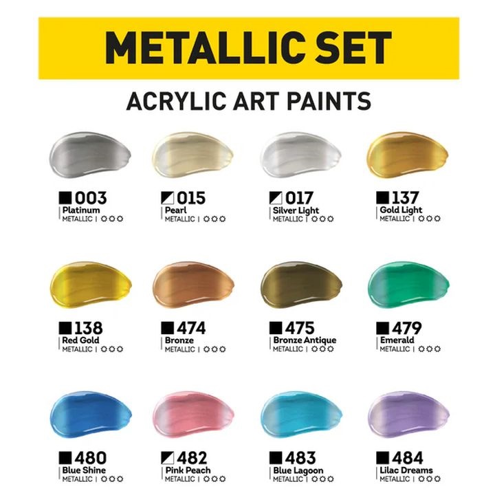 Visokokvalitetne metalik akrilne boje za umetnike i hobiste