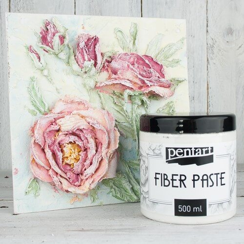 Reč je o Fiber pasti - proizvod koji je na akrilnoj bazi, odnosno, na bazi vode. Možda ste već po nazivu i pretpostavili da ova pasta u sebi sadrži vlakna, tačnije - vlakna celuloze. Da nemamo fotografija bilo bi nam jako teško da vam objasnimo kako to zapravo izgleda u svežem stanju i kakav izgled dobija nakon sušenja, ali jednim pogledom na priložene fotografije radova nastalih od ovog proizvoda biće vam jasno o čemu je reč.
