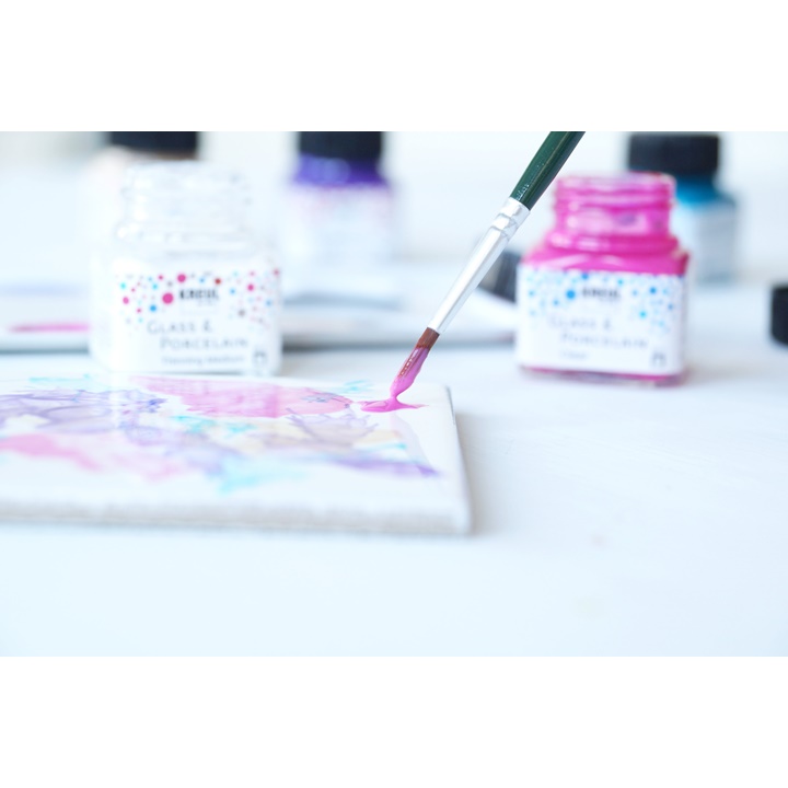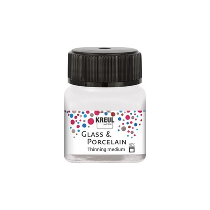 KREUL medijum za razređivanje boje na staklu i porcelanu je specijalno dizajniran i providan. Razređivač omogućava umetnicima i zanatlijama da postignu efekat akvarela na staklu, porcelanu, keramici, terakoti i metalu. Jednom pečene na 160°C, kreacije su vodootporne i mogu se prati u mašini za sudove. Razređivač , kao i ostale boje iz asortimana KREUL Glass & Porcelain , napravljeni su od najmanje 60% održivih sirovina prirodnog porekla. Transparentnost razređivača omogućava suptilne prelaze i dubinu u umetničkom delu. Zbog svoje jedinstvene formulacije, boja postaje svetlija kada se razblaži, pružajući veću fleksibilnost i opseg primene. Medij je tako dizajniran ne samo za iskusne umetnike, već i za početnike koji cene visok kvalitet i sigurnost u svom stvaralačkom radu. KREUL razređivač stakla i porcelana je stoga neophodan dodatak za svakoga ko se bavi dekoracijom i personalizacijom predmeta i želi da njihov rad traje dugo, kako lepo tako i funkcionalno.
