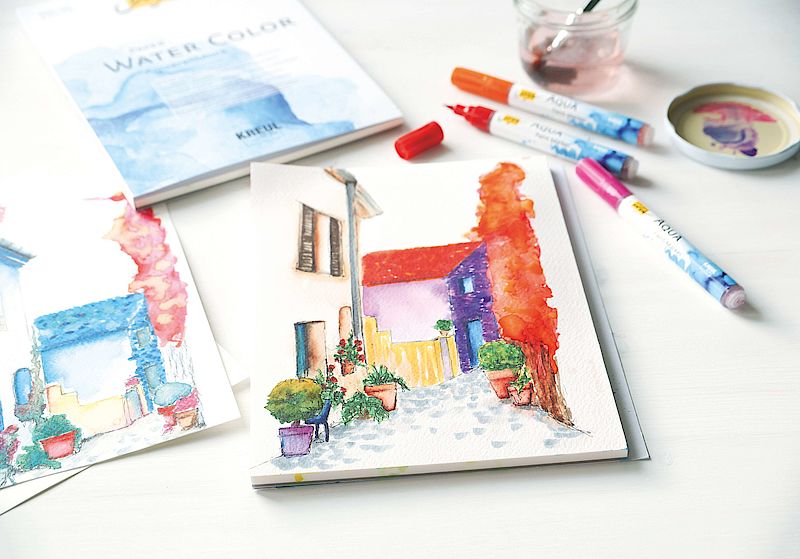 Isprobajte sa nama novinu marke Kreula koja će Vam otvoriti novi svet vodenih boja. Akvarel marker Auqa Solo Goya predstavlja kombinaciju profesionalnog dizajna I odličnog kvaliteta. Flomaster ima vrh nalik na četkicu (brush pen), koji će slikanje na akvarel papiru učiniti zadovoljstvom. Solo Goya flomaster je idealan za slikanje na akvarel papiru. Može se koristiti na suvom ili vlažnom papiru. Stvara jednistvene, intenzivne nijanse. Set sadrži 6 akvarel flomastera u raznim bojama.