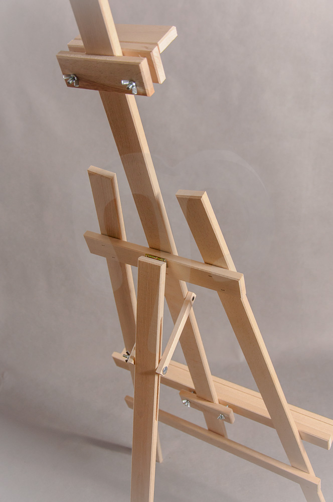 Stabilni štafelaj sa kliznim gornjim i donjim držačem za podešavanje platna. Izrađen je od bukovog drveta i nije tretiran uljem.